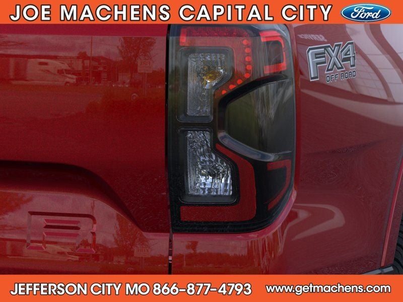 Ruby Red Metallic 2025 Ford Ranger Lariat 4WD 10-Speed Automatic EcoBoost 2.3L I4 GTDi DOHC Turbocharged VCT 4WD, 10 Speakers, 4-Wheel Disc Brakes, ABS brakes, Air Conditioning, AM/FM radio: SiriusXM, Auto High-beam Headlights, Automatic temperature control, Black Appearance Package, Black Center Bar & Surround Grille, Black Rear Bumper, Black Running Boards, Body-Color Painted Front Fascia, Class IV Trailer Hitch Receiver, Compass, Delay-off headlights, Driver door bin, Driver vanity mirror, Electronic-Locking Rear Differential, Equipment Group 500A Standard, Front & Rear Black Ford Ovals, Front dual zone A/C, Front fog lights, Front License Plate Bracket, Front reading lights, Fully automatic headlights, FX4 Off-Road Box Decal, FX4 Off-Road Package, FX4 Selectable Drive Modes, Garage door transmitter, Gray Painted Center Bar & Grille Surround, Gray Painted Front Fascia & Rear Bumper, Heated door mirrors, Heated steering wheel, Illuminated entry, Leather Shift Knob, Leather steering wheel, Leather-Trimmed Front Heated Bucket Seats, Memory seat, Navigation system: Connected Navigation, Off-Road Screen in Center Stack, Off-Road Tuned Shocks, Outside temperature display, Overhead console, Painted Body-Color Wheel Lip Molding, Panic alarm, Passenger vanity mirror, Power door mirrors, Power driver seat, Power steering, Power windows, Radio: B&O Sound System by Bang & Olufsen, Rear reading lights, Rear seat center armrest, Rear step bumper, Rear window defroster, Remote keyless entry, Security system, SiriusXM Satellite Radio, Speed control, Speed-sensing steering, Sport Appearance Package, Sport Box Decal, Steering wheel mounted audio controls, SYNC 4A w/Connected Navigation, Telescoping steering wheel, Tilt steering wheel, Traction control, Trail Control, Trailer Tow Package, Trip computer, Turn signal indicator mirrors, Unique Carpet Mats, Voltmeter, Wheels: 18 Black Painted.