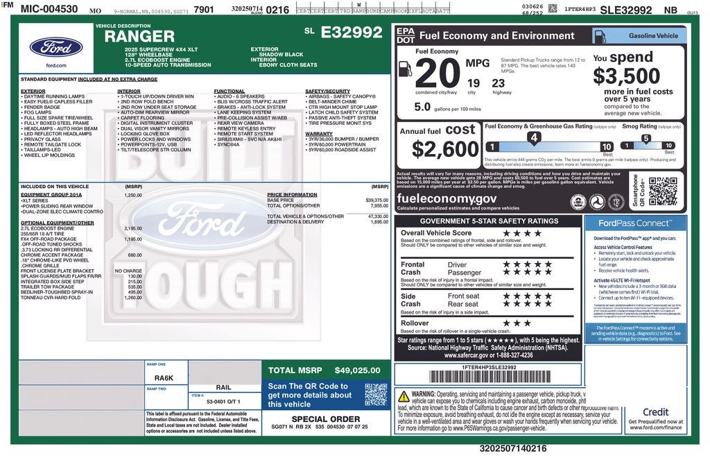 If you're in the market for a midsize pickup that can handle your active lifestyle, the 2025 Ford Ranger XLT is a must-see. Schedule a test drive today and experience the perfect blend of capability, comfort, and technology. Price includes: $1000 - Truck Month Bonus Customer Cash. Exp. 03/31/2026 $2000 - Bonus Customer Cash. Exp. 03/31/2026