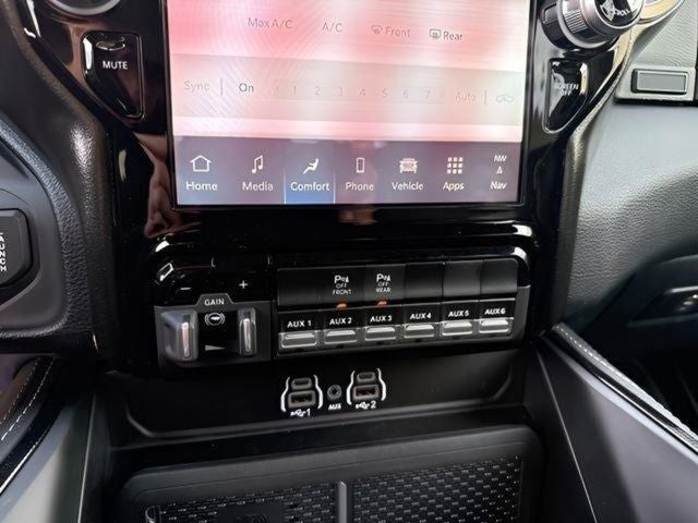 Forged Blue Metallic 2026 Ram 1500 RHO 4WD 8-Speed Automatic 3.0L I6 10 Speakers, 3.92 Rear Axle Ratio, 4-Wheel Disc Brakes, 4G LTE Wi-Fi Hot Spot, ABS brakes, Adaptive suspension, Adjustable pedals, AM/FM radio, Apple CarPlay/Android Auto, Auto High-beam Headlights, Auto Power-Folding Mirrors, Auto-dimming door mirrors, Auto-Dimming Exterior Driver Mirror, Auto-dimming Rear-View mirror, Bed Utility Group, Brake assist, Compass, Connected Travel and Traffic Services, Connectivity - US/Canada, Delay-off headlights, Disassociated Touchscreen Display, Driver door bin, Driver vanity mirror, Dual front impact airbags, Dual front side impact airbags, Electronic Stability Control, Exterior 115V AC Outlet, Exterior Mirrors Courtesy Lamps, Exterior Mirrors with Heating Element, Exterior Mirrors with Supplemental Signals, Exterior Parking Camera Rear, Flareside Box, Front anti-roll bar, Front Bucket Seats, Front fog lights, Front License Plate Bracket, Front wheel independent suspension, Fully automatic headlights, GPS Navigation, HD Radio, Heated door mirrors, Heated front seats, Integrated Center Stack Radio, Leather Trimmed Bucket Seats, Low tire pressure warning, MOPAR 4 Adjustable Cargo Tie-Down Hooks, MOPAR Deployable Bed Step, MOPAR RHO Exterior Graphics, MOPAR RHO Hood Graphics, Navigation System, Occupant sensing airbag, Outside temperature display, Overhead airbag, Power driver seat, Power passenger seat, Power steering, Power windows, Quick Order Package 22Y RHO, Radio data system, Radio: Uconnect 5 Navigation with 12.0 Display, Rear reading lights, Rear seat center armrest, Rear step bumper, Remote keyless entry, SiriusXM Radio Service, Split folding rear seat, Sport steering wheel, Steering wheel mounted audio controls, Tachometer, Telescoping steering wheel, Traction control, Variably intermittent wipers, Wheels: 18 x 9 Black Paint/Polish Aluminum.