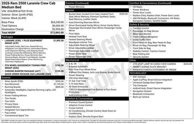 2026 Ram 2500 Laramie Laramie 6.4L V8 Silver Zynith
