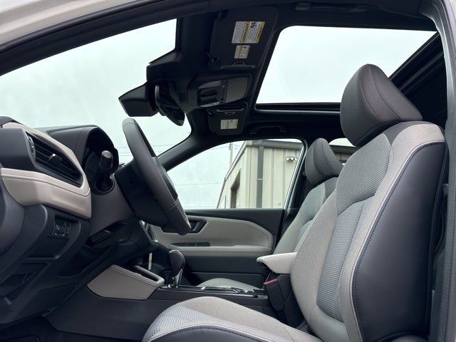 4-Wheel Disc Brakes, 6 Speakers, ABS brakes, Air Conditioning, Alloy wheels, AM/FM radio: SiriusXM with 360L, Anti-whiplash front head restraints, Auto High-beam Headlights, Automatic temperature control, Brake assist, Bumpers: body-color, Driver door bin, Driver vanity mirror, Dual front impact airbags, Dual front side impact airbags, Electronic Stability Control, Emergency communication system: MySubaru Companion (5-years free), Exterior Parking Camera Rear, Four wheel independent suspension, Front anti-roll bar, Front Bucket Seats, Front Center Armrest, Front dual zone A/C, Front fog lights, Front reading lights, Fully automatic headlights, Heated door mirrors, Heated Front Bucket Seats, Heated front seats, Illuminated entry, Knee airbag, Leather steering wheel, Low tire pressure warning, Occupant sensing airbag, Outside temperature display, Overhead airbag, Overhead console, Panic alarm, Passenger door bin, Passenger vanity mirror, Power door mirrors, Power driver seat, Power moonroof: Panoramic, Power steering, Power windows, Premium Textured Cloth Upholstery, Radio data system, Radio: Subaru 11.6 Multimedia Plus System, Rear anti-roll bar, Rear seat center armrest, Rear window defroster, Rear window wiper, Remote keyless entry, Security system, Speed control, Speed-sensing steering, Split folding rear seat, Spoiler, Steering wheel mounted audio controls, Tachometer, Telescoping steering wheel, Tilt steering wheel, Traction control, Trip computer, Variably intermittent wipers, Wheels: 17 x 7.0 J Dark Metallic Aluminum-Alloy. 26/33 City/Highway MPG