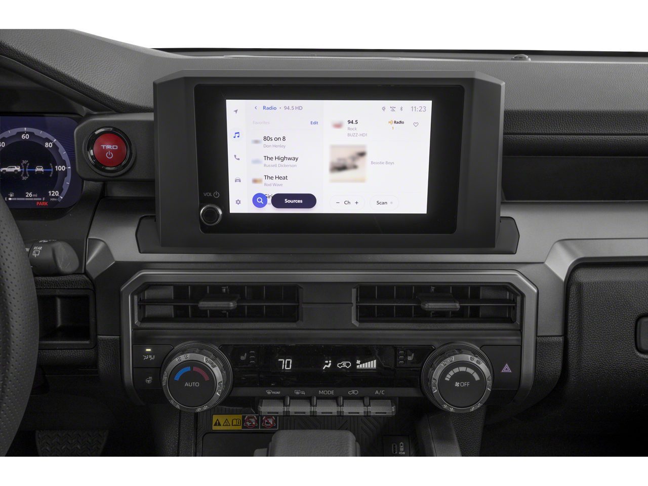 - Radio: 8" Audio -inc: multimedia display w/8-speaker audio system, wireless Apple CarPlay and Android Auto compatibility, SiriusXM 3-month trial, See toyota.com/audio-multimedia for details