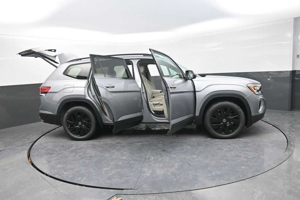 This Atlas stands out visually with the Black Wheel Package, 20-inch multi-spoke black painted alloy wheels, Volkswagen logo puddle lights, and a black Bumperdillo rear bumper protection plate, giving it a bold and modern appearance. Backed by VW Care and offered at $4,838 off MSRP, this 2026 Volkswagen Atlas 2.0T SE with Technology delivers exceptional value, versatility, and comfort for families and drivers who expect more from their SUV.