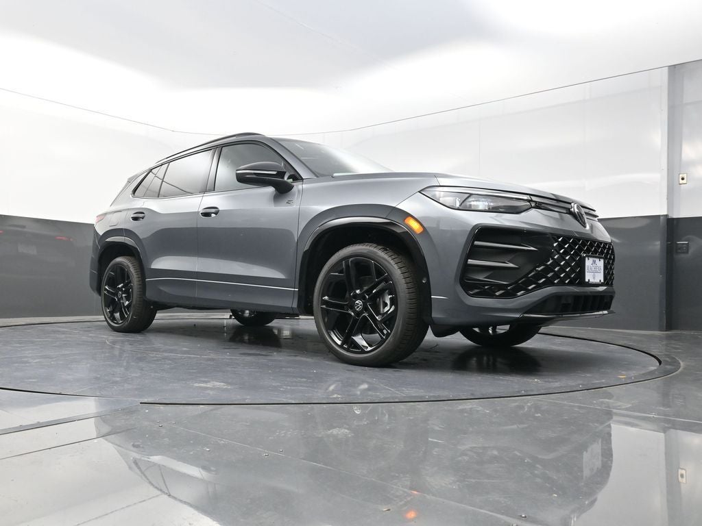 The 2026 Volkswagen Tiguan 2.0T SE R-Line Black in Platinum Gray with a Grigio and Black interior combines bold styling, premium comfort, and confident all-wheel-drive performance. Powered by a 2.0-liter turbocharged engine, it delivers smooth and responsive acceleration while maintaining impressive efficiency. The exterior showcases a sporty and distinctive R-Line Black appearance package with gloss black accents, unique front and rear bumpers, and 19-inch black alloy wheels that enhance its athletic presence. The cabin is refined and comfortable, featuring CloudTex and V-Tex leatherette upholstery in Grigio and Black, heated front seats, a power panoramic sunroof, and dual-zone automatic climate control. The advanced MIB3 infotainment system with an 8-inch touchscreen integrates Apple CarPlay, Android Auto, Bluetooth®, and multiple USB and AUX connections for seamless connectivity and entertainment. Practical features such as steering wheel-mounted controls, power-adjustable front seats, a rearview camera, rain-sensing wipers, and fully automatic LED headlights contribute to a convenient and secure driving experience. The Tiguans AWD system ensures confident handling in a variety of driving conditions, while its spacious interior and thoughtful design provide exceptional comfort for both driver and passengers. Combining a sporty aesthetic with refined sophistication, the 2026 Tiguan 2.0T SE R-Line Black delivers a driving experience that embodies the innovation and precision of German engineering.
