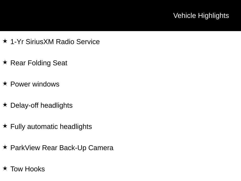 - POPULAR EQUIPMENT GROUP: Includes Rear Floor Mats, Front Floor Mats, SiriusXM Satellite Radio, Remote Keyless Entry w/All-Secure
