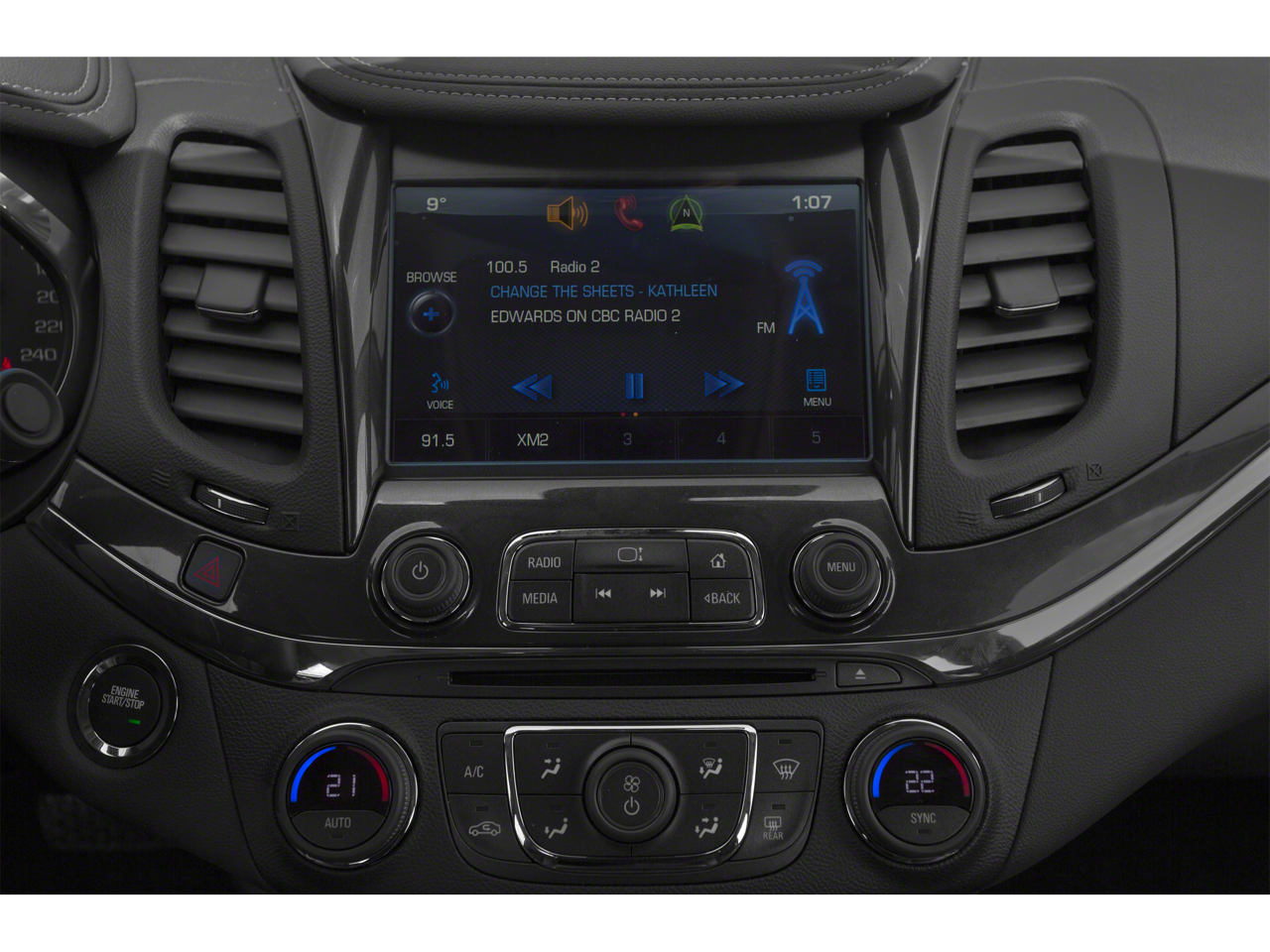 100-Watt 6-Speaker System, 120-Volt Power Outlet, 3 USB Ports, 4-Wheel Disc Brakes, 6 Speakers, 8-Way Power Driver Seat Adjuster, 8-Way Power Front Passenger Seat Adjuster, 8 Diagonal Color Infotainment Display, ABS brakes, Air Conditioning, Alloy wheels, AM/FM radio: SiriusXM, Auto-Dimming Inside Rear-View Mirror, Automatic temperature control, Bodyside moldings, Bose Centerpoint Surround Sound w/11-Speakers, Brake assist, Bumpers: body-color, Carpeted Trunk Mat, CD player, Comfort & Convenience Package, Compass, Delay-off headlights, Driver door bin, Driver Memory, Driver Power Lumbar Seat Adjuster, Driver vanity mirror, Dual front impact airbags, Dual front side impact airbags, Electronic Stability Control, Emergency communication system: OnStar Directions & Connections, Exterior Parking Camera Rear, Four wheel independent suspension, Front anti-roll bar, Front Bucket Seats, Front Center Armrest, Front dual zone A/C, Front Passenger Power Lumbar Seat Adjuster, Front reading lights, Fully automatic headlights, Heated door mirrors, Heated front seats, Heated Steering Wheel, High-Intensity Discharge Headlights, Illuminated entry, Knee airbag, Leather Shift Knob, Leather-Appointed Seat Trim, Low tire pressure warning, Occupant sensing airbag, Outside Heated Power-Adjustable Mirrors, Overhead airbag, Overhead console, Panic alarm, Passenger door bin, Passenger vanity mirror, Power door mirrors, Power driver seat, Power passenger seat, Power steering, Power Tilt & Telescoping Steering Column, Power Tilt-Sliding Sunroof, Power windows, Preferred Equipment Group 2LZ, Premium Audio Package, Premium audio system: Chevrolet MyLink, Premium Carpeted Front & Rear Floor Mats, Radio data system, Radio: Chevrolet MyLink AM/FM Stereo w/CD & NAV, Radio: Chevrolet MyLink AM/FM Stereo w/CD Player, Rear anti-roll bar, Rear reading lights, Rear seat center armrest, Rear side impact airbag, Rear window defroster, Remote keyless entry, SD Card Receptacle, Security system, SiriusXM Satellite Radio, Speed control, Speed-sensing steering, Split folding rear seat, Steering wheel mounted audio controls, Tachometer, Telescoping steering wheel, Tilt steering wheel, Traction control, Trip computer, Turn signal indicator mirrors, Universal Home Remote, Variably intermittent wipers, Ventilated Driver Seat, Ventilated Front Passenger Seat, Wheels: 19 Machined-Face Aluminum.