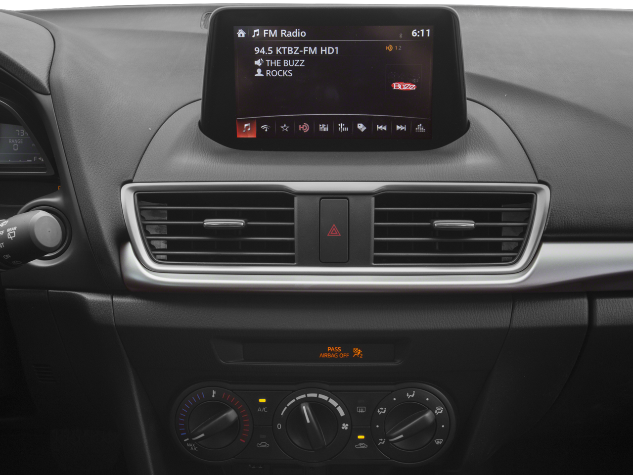 - Radio: AM/FM/HD Audio System -inc: digital clock, 6-speaker full-range door-mounted type sound system, Bluetooth® handsfree phone and audio, auxiliary audio input jack and 2 USB audio inputs, MAZDA CONNECT™ Infotainment System, voice-command, E911 automatic emergency notification, 7" full-color touch-screen display, multi-function Commander control, Pandora, Aha and Stitcher internet radio integration, Radio Broadcast Data System program information and SMS text message audio delivery and reply