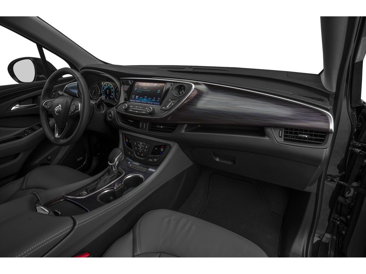 Envision Premium II, AWD, 1500 lbs Trailering Package (LPO), Active Package (LPO), All-Weather Floor Liners (LPO), Apple CarPlay/Android Auto, Auto-dimming Rear-View mirror, Automatic temperature control, Bose Premium 7-Speaker System w/Amplifier, Driver 8-Way Power Seat Adjuster, Driver door bin, Driver Seat Manual Thigh Adjuster, Dual front impact airbags, Dual front side impact airbags, Dual USB Charging-Only Ports, Dual USB Ports w/Single Auxiliary Input Jack, Front reading lights, Garage door transmitter, Heads-Up Display, Heated & Cooled Driver & Front Passenger Seats, Heated Driver & Front Passenger Seats, Heated front seats, Heated rear seats, Heated steering wheel, Integrated Cargo Liner (LPO), Knee airbag, Leather Shift Knob, Low tire pressure warning, Memory seat, Memory Settings, Navigation System, Occupant sensing airbag, Outside temperature display, Perforated Leather-Appointed Seat Trim, Power driver seat, Power Liftgate, Power Panoramic Tilt-Sliding Moonroof, Power passenger seat, Power steering, Power windows, Radio data system, Radio: Buick Infotainment System AM/FM w/Nav, Rain sensing wipers, Rear window wiper, Remote keyless entry, SiriusXM Radio, Speed-sensing steering, Steering wheel mounted audio controls, Tachometer, Telescoping steering wheel, Tilt steering wheel, Variably intermittent wipers.