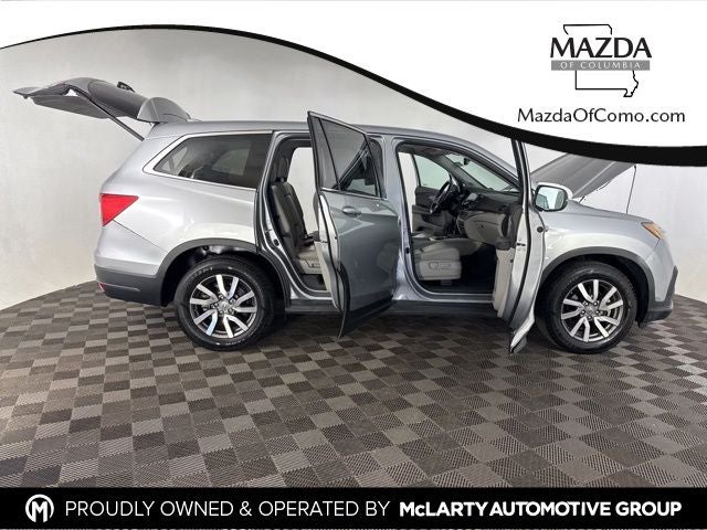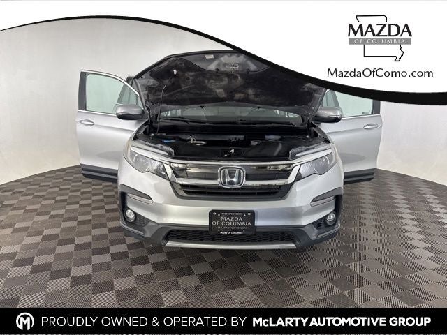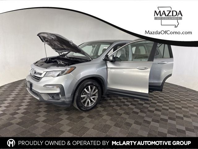 Lunar Silver Metallic 2020 Honda Pilot EX-L 3.5L V6 24V SOHC i-VTEC 6-Speed Automatic FWD 3rd row seats: split-bench, 4-Wheel Disc Brakes, 7 Speakers, ABS brakes, Air Conditioning, Alloy wheels, AM/FM radio: SiriusXM, Apple CarPlay/Android Auto, Auto High-beam Headlights, Auto-dimming Rear-View mirror, Automatic temperature control, Blind Spot Information (BSI) System warning, Delay-off headlights, Electronic Stability Control, Exterior Parking Camera Rear, Forward collision: Collision Mitigation Braking System (CMBS) + FCW mitigation, Front Bucket Seats, Front Center Armrest, Front dual zone A/C, Fully automatic headlights, Heated Front Bucket Seats, Heated front seats, Lane departure: Lane Keeping Assist System (LKAS) active, Leather Seat Trim, Memory seat, Power driver seat, Power Liftgate, Power moonroof, Power passenger seat, Power windows, Radio: 215-Watt Audio System, Rear air conditioning, Rear window defroster, Reclining 3rd row seat, Remote keyless entry, Split folding rear seat, Steering wheel mounted audio controls.