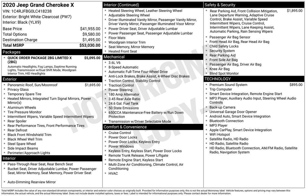 Bright White Clearcoat 2020 Jeep Grand Cherokee Limited X 4WD 8-Speed Automatic 3.6L V6 24V VVT