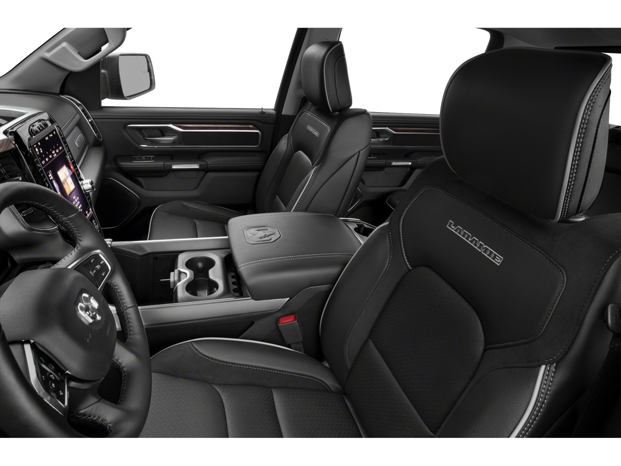 10 Speakers, 4-Wheel Disc Brakes, 8.4 Touchscreen Display, ABS brakes, Air Conditioning, AM/FM radio: SiriusXM, Apple CarPlay, Apple CarPlay/Android Auto, Audio memory, Auto High Beam Headlamp Control, Automatic temperature control, Bright Day Light Opening Moldings, Bumpers: chrome, Chrome Appearance Group, Chrome Exterior Mirrors, Chrome Tow Hooks, Compass, Driver Seat Memory, Foam Bottle Insert (Door Trim Panel), Front dual zone A/C, GPS Antenna Input, Heated door mirrors, Heated Steering Wheel, Heated steering wheel, Integrated Center Stack Radio, Laramie Level A Equipment Group, Memory seat, Overhead console, ParkSense Front/Rear Park Assist w/Stop, Pedal memory, Power driver seat, Power steering, Power windows, Quick Order Package 27H Laramie, Radio data system, Radio: Uconnect 4 w/8.4 Display, Rain Sensitive Windshield Wipers, Rear 60/40 Folding Split Recline Seat, Rear window defroster, Remote keyless entry, Remote Tailgate Release, SiriusXM Radio Service, SiriusXM Satellite Radio, Steering wheel mounted audio controls, Tailgate Ajar Warning Lamp, Traction control, Wheel to Wheel Side Steps.