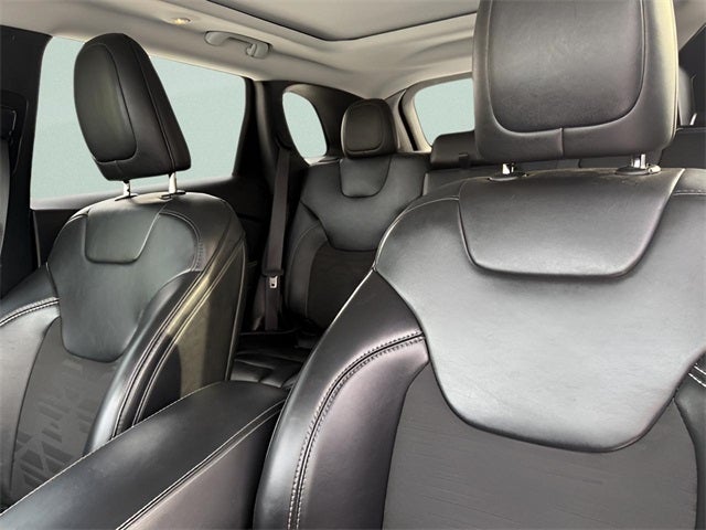 6 Speakers, All-Season Floor Mats, AM/FM radio: SiriusXM, Apple CarPlay/Android Auto, Brake assist, Bumpers: body-color, Cherokee X, Cherokee X Door Decal, Cherokee X Fascia, Cherokee X Hood & Liftgate Decal, Cloth/Premium Vinyl Seats w/Pixel Play, Electronic Stability Control, Front Bucket Seats, Front Center Armrest, Front LED Fog Lamps, Front License Plate Bracket, Fully automatic headlights, Gloss Black Badges, Gloss Black Exterior Accents, Gloss Black Grille Surrounds, Heated Front Seats, Heated Steering Wheel, Leather Wrapped Shift Knob, Light Tungsten Interior Accents, Matte Black Rear Tow Hook, Off Road Suspension, Off Road Wheel Flares, Offroad Sill Cladding, ParkView Rear Back-Up Camera, Power Adjust 8-Way Driver Seat, Power Driver Lumbar Adjust, Power Front/Fixed Rear Full Sunroof, Power steering, Power windows, Premium Alpine Speaker System, Premium-Wrapped Steering Wheel, Quick Order Package 26S Cherokee X, Radio data system, Radio: Uconnect 4 w/8.4 Display, Remote keyless entry, Remote Start System, Silver Anodized Interior Accents, Sliding Sun Visors w/Illuminated Mirrors, Steering Wheel Mounted Audio Controls, Sun & Sound Group, Wheels: 17 x 7.5 Black Painted Aluminum, Windshield Wiper De-Icer.