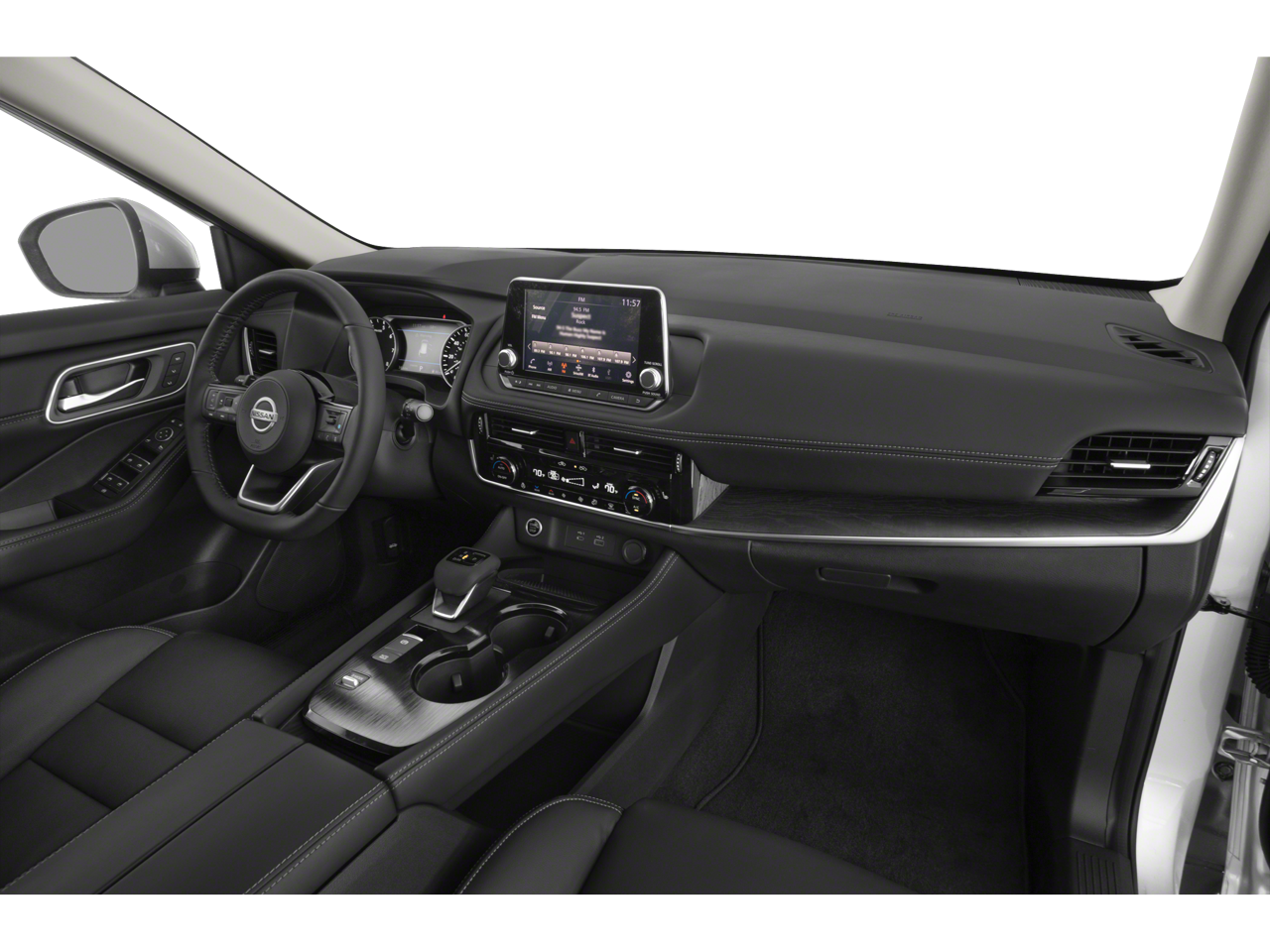 Inside, the Rogue SL offers heated leather-appointed front bucket seats, including an 8-way power drivers seat with 2-way lumbar support and memory, and a 4-way power front passenger seat. Dual-zone and tri-zone HVAC, heated leather steering wheel, and heated rear seats provide comfort for all passengers. The cabin also includes a leather-appointed steering wheel, 60/40 split-folding rear seats, front and rear center armrests, Day-Night auto-dimming rearview mirror, illuminated kick plates, cargo area organizer and concealed storage, and remote releases for power cargo access.