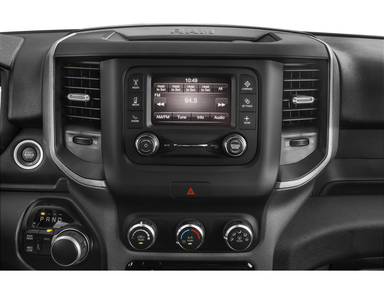 2 Way Rear Headrest Seat, 3.73 Axle Ratio, 4 Way Front Headrests, 4-Wheel Disc Brakes, 40/20/40 Split Bench Seat, 4G LTE Wi-Fi Hot Spot, 6 Speakers, 8.4 Touchscreen Display, ABS brakes, Active Noise Control System, Air Conditioning, Air Conditioning ATC w/Dual Zone Control, Alexa Built-In, All R1 High Radios, All Radio Equipped Vehicles, AM/FM radio, Apple CarPlay, Auto-Dimming Rear-View Mirror, Bed Utility Group, Black Exterior Mirrors, Bright Front Bumper, Bright Rear Bumper, Carpet Floor Covering, Center Hub, Chrome Appearance Group, Chrome Flat Cab-Length Side Steps, Chrome Grille Surround, Chrome Headlamp Bezels, Cloth 40/20/40 Bench Seat, Connected Travel & Traffic Services, Connectivity - US/Canada, Convenience Group, Disassociated Touchscreen Display, Dual front impact airbags, Dual front side impact airbags, Electric Shift-On-The-Fly Transfer Case, Emergency communication system: SiriusXM Guardian, Exterior Mirrors Courtesy Lamps, Exterior Mirrors w/Heating Element, Exterior Mirrors w/Supplemental Signals, For Details Visit DriveUconnect.com, For More Info, Call 800-643-2112, Front & Rear Floor Mats, Front anti-roll bar, Front Armrest w/Cupholders, Front reading lights, Fully automatic headlights, Global Telematics Box Module (TBM), Google Android Auto, GPS Antenna Input, GPS Navigation, HD Radio, HD Vinyl 40/20/40 Split Bench Seat, Integrated Center Stack Radio, Integrated Voice Command w/Bluetooth®, LED Bed Lighting, Low tire pressure warning, Manual Adjust 4-Way Driver Seat, Manual Adjust 4-Way Front Passenger Seat, Manual Folding Exterior Mirrors, Manual Telescoping Mirrors, Matte Black Mesh w/Chrome Grille, Mirror Running Lights, MOPAR Deployable Bed Step, MOPAR Spray In Bedliner, Occupant sensing airbag, Off-Road Information Pages, Outside temperature display, Overhead airbag, Overhead console, Panic alarm, Passenger vanity mirror, Power Adjust Mirrors, Power Heat Fold Telescopic Mirrors, Power steering, Power windows, Power-Adjustable Convex Aux Mirrors, Quick Order Package 2GA Tradesman, Radio data system, Radio: Uconnect 3 w/5 Display, Radio: Uconnect 5 Nav w/8.4 Display, Rear Folding Seat, Rear Power Sliding Window, Rear step bumper, Rear Wheelhouse Liners, Rear Window Defroster, Remote keyless entry, Remote USB Port - Charge Only, Selectable Tire Fill Alert, SiriusXM Radio Service, SiriusXM w/360L, Tinted Acoustic Windshield Glass, Tip Start, Traction control, Tradesman Level 2 Equipment Group, Trailer Brake Control, Trailer Light Check, Trailer Tow Pages, Variably intermittent wipers, Wheels: 18 x 8.0 Steel Chrome Clad.