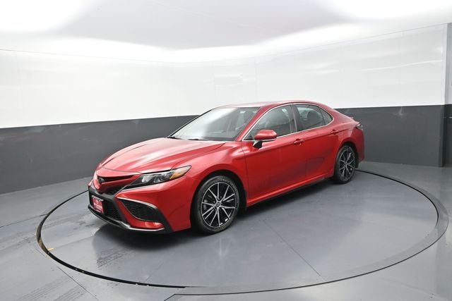 CARFAX One-Owner. Supersonic Red 2024 Toyota Camry SE FWD 8-Speed Automatic 2.5L I4 DOHC 16V Black w/Sport SofTex Seat Trim w/Fabric Inserts, ABS brakes, Active Cruise Control, Alloy wheels, Electronic Stability Control, Front dual zone A/C, Heated door mirrors, Illuminated entry, Low tire pressure warning, Remote keyless entry, Traction control.