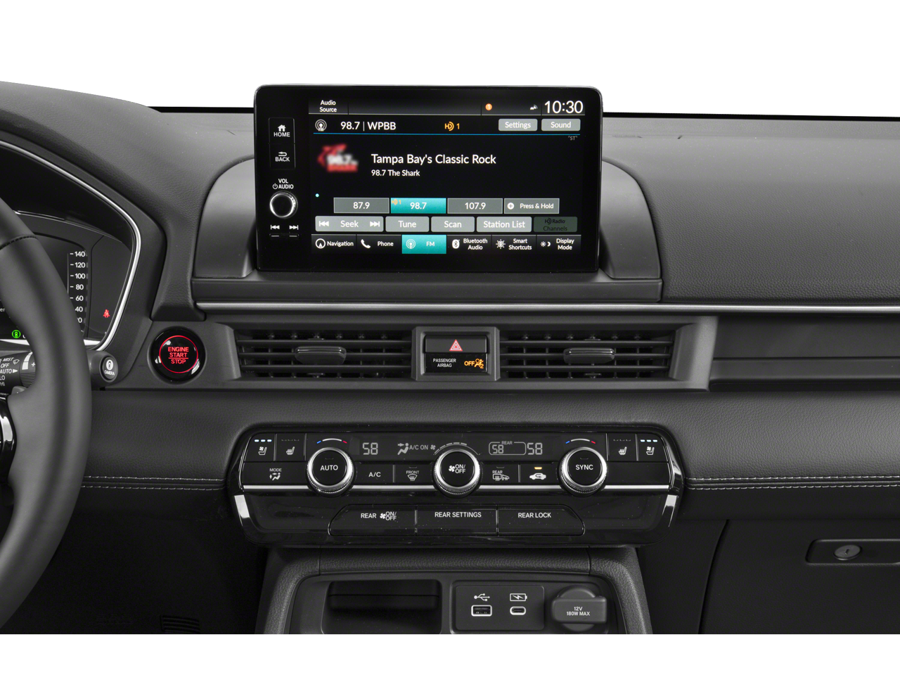 AWD, 12 Speakers, 3rd row seats: split-bench, 4-Wheel Disc Brakes, 4.167 Axle Ratio, ABS brakes, Adaptive Cruise Control: Adaptive Cruise Control (ACC) with Low-Speed Follow, Air Conditioning, AM/FM radio: SiriusXM, Apple CarPlay/Android Auto, Auto High-beam Headlights, Auto-dimming door mirrors, Auto-dimming Rear-View mirror, Automatic temperature control, Blind Spot Information (BSI) System warning, Bose Premium Sound System, Brake assist, Bumpers: body-color, Compass, Delay-off headlights, Driver door bin, Driver vanity mirror, Dual front impact airbags, Dual front side impact airbags, Electronic Stability Control, Emergency communication system: HondaLink, Exterior Parking Camera Rear, Four wheel independent suspension, Front anti-roll bar, Front Bucket Seats, Front Center Armrest, Front dual zone A/C, Front fog lights, Front reading lights, Fully automatic headlights, Garage door transmitter: HomeLink, Heads-Up Display, Heated and Ventilated Front Bucket Seats, Heated door mirrors, Heated front seats, Heated rear seats, Heated steering wheel, Honda Satellite-Linked Navigation System, HondaLink Subscription Services, Illuminated entry, Knee airbag, Lane departure: Lane Keeping Assist System (LKAS) active, Low tire pressure warning, Memory seat, Navigation system: Honda Satellite-Linked Navigation System, Occupant sensing airbag, Outside temperature display, Overhead airbag, Overhead console, Panic alarm, Passenger door bin, Passenger vanity mirror, Perforated Leather Seat Trim, Power door mirrors, Power driver seat, Power Liftgate, Power moonroof, Power passenger seat, Power steering, Power windows, Radio data system, Rain sensing wipers, Rear air conditioning, Rear anti-roll bar, Rear reading lights, Rear seat center armrest, Rear window defroster, Rear window wiper, Reclining 3rd row seat, Remote keyless entry, Security system, SiriusXM, Speed control, Speed-sensing steering, Speed-Sensitive Wipers, Split folding rear seat, Spoiler, Steering wheel mounted audio controls, Tachometer, Telescoping steering wheel, Tilt steering wheel, Traction control, Trip computer, Turn signal indicator mirrors, Variably intermittent wipers, Ventilated front seats, Wheels: 20 S